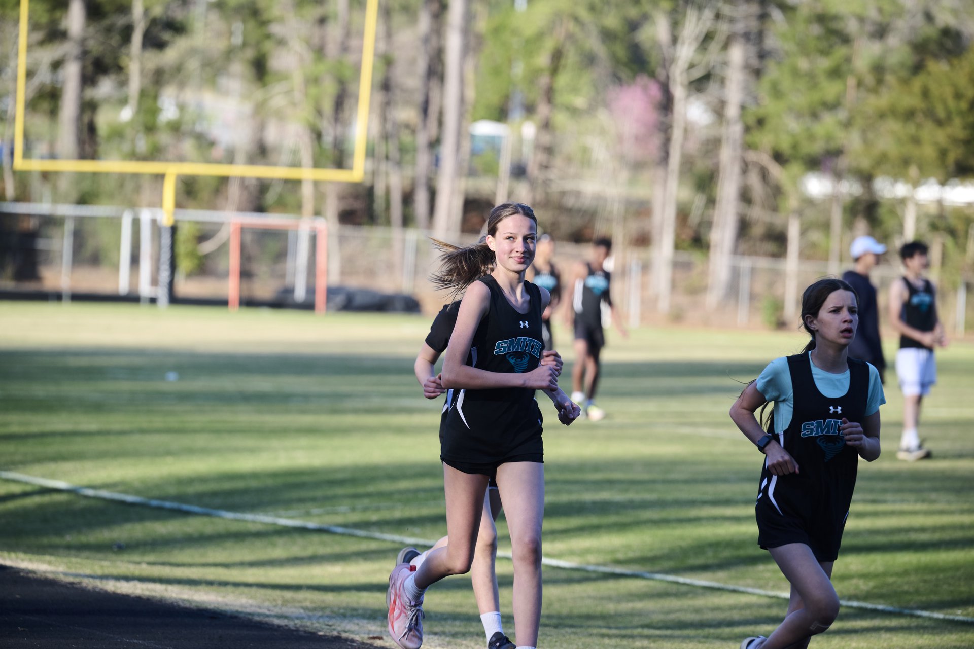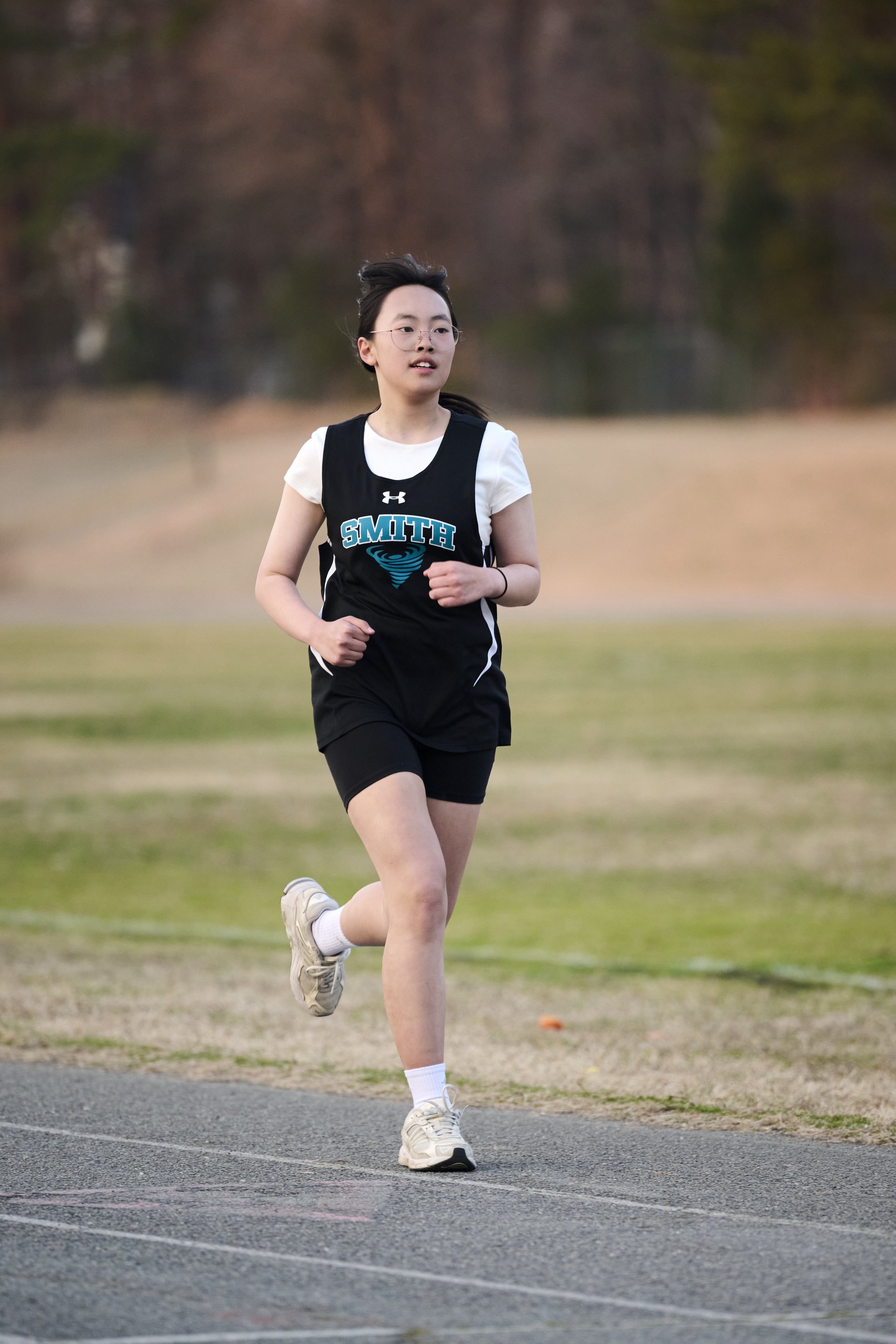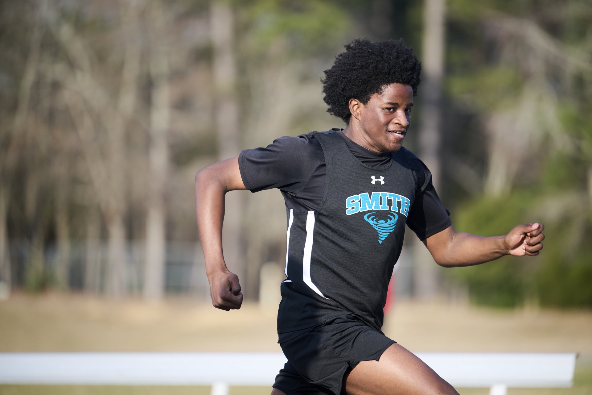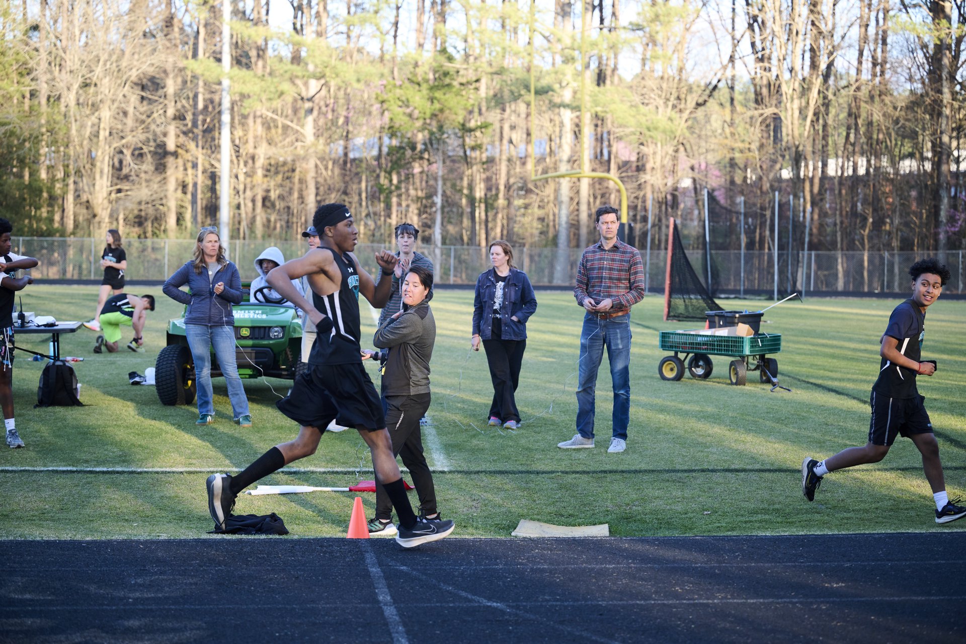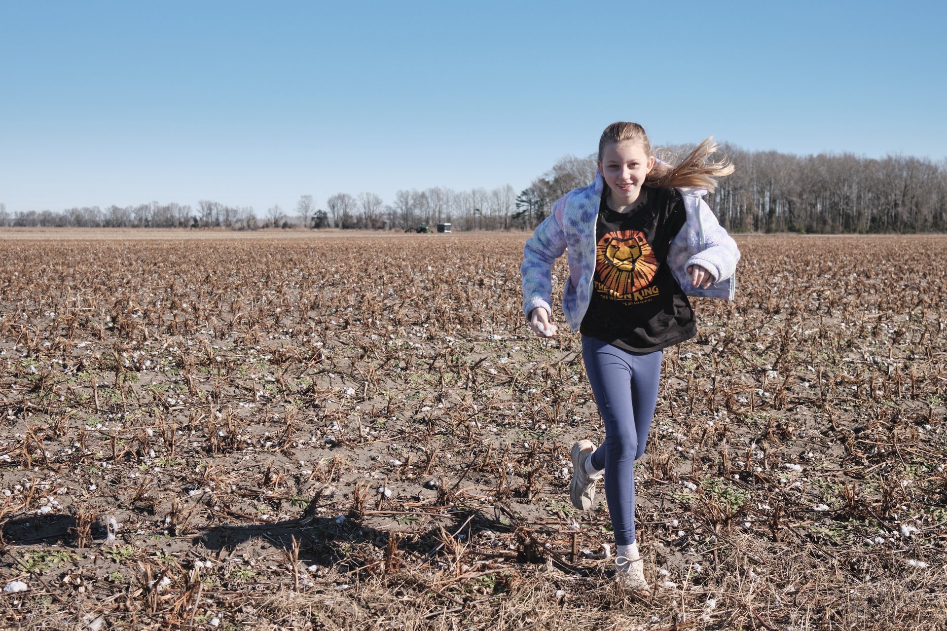 A running through a cotton field