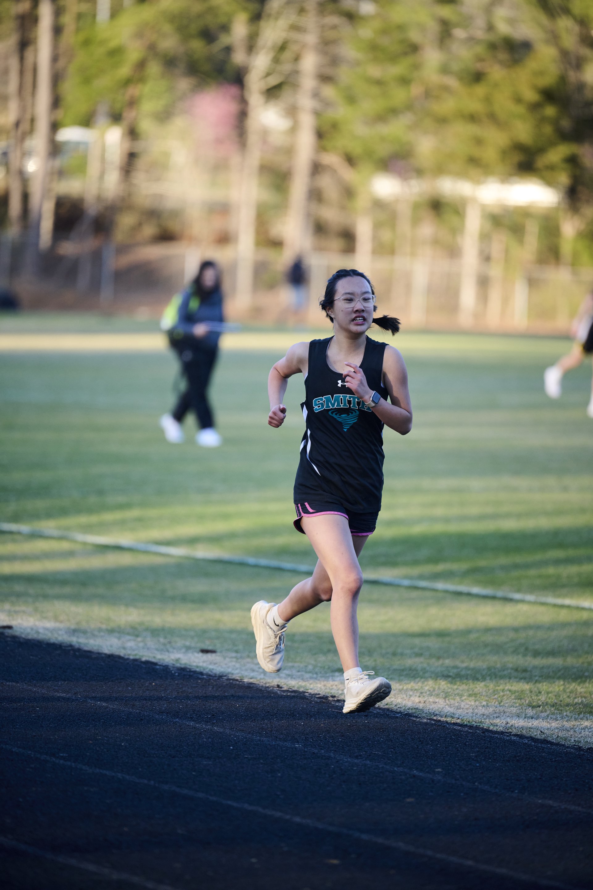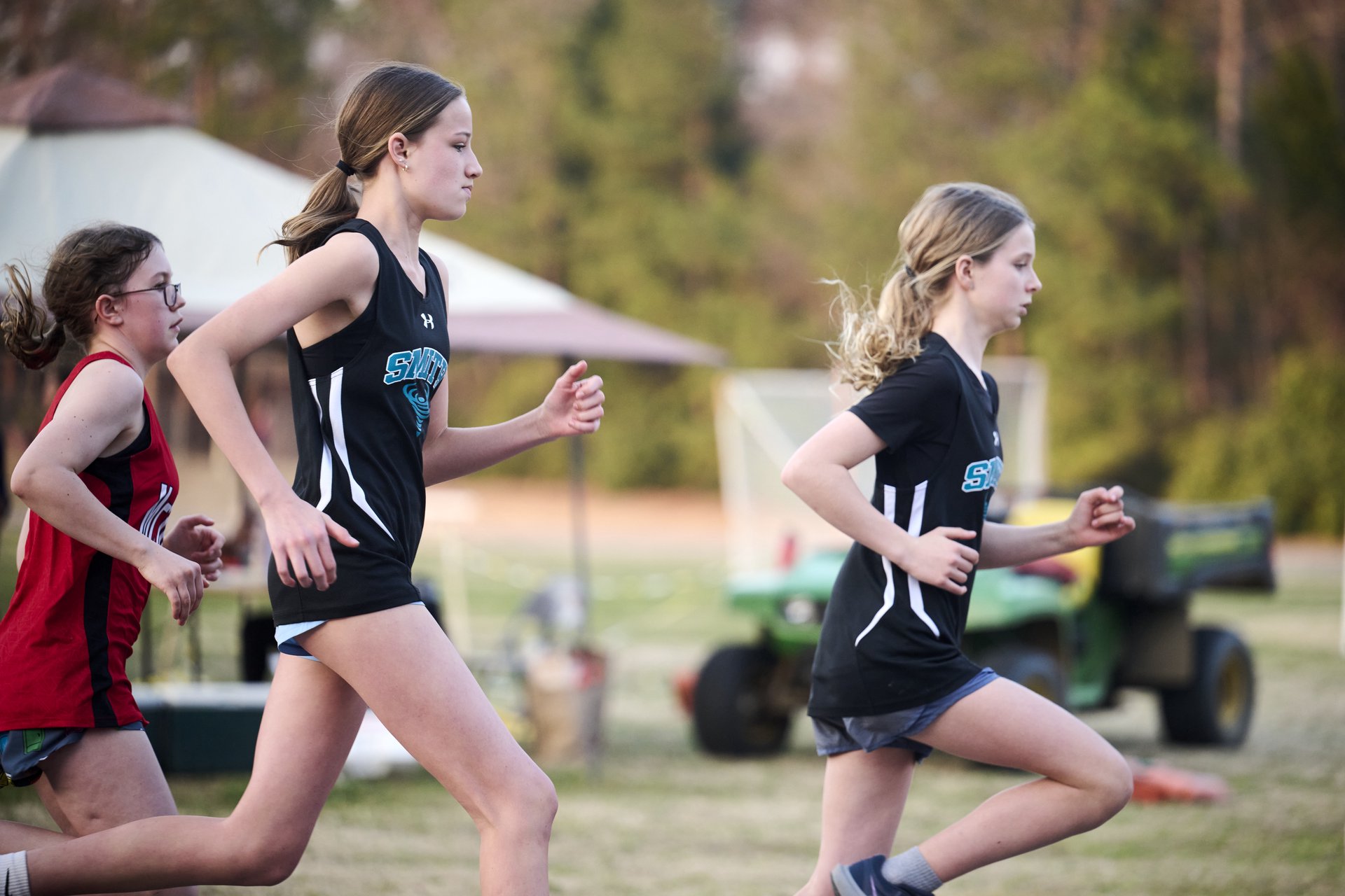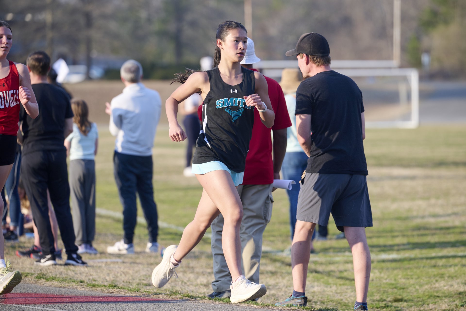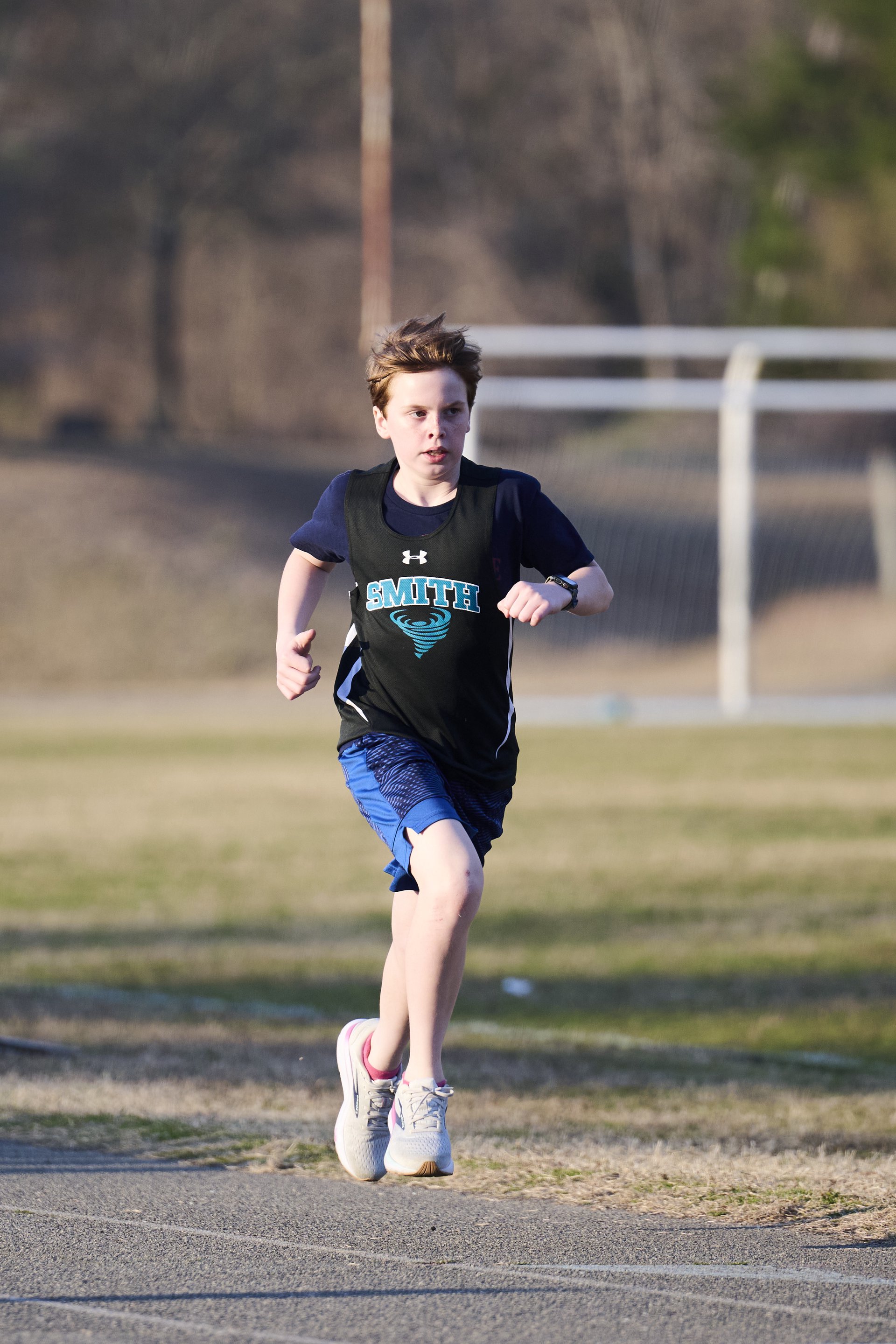 A running through a cotton field