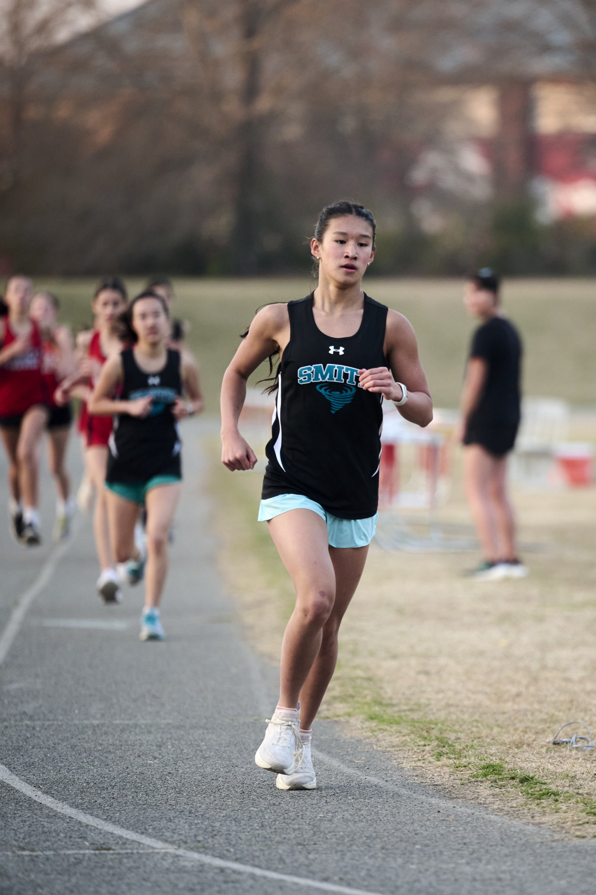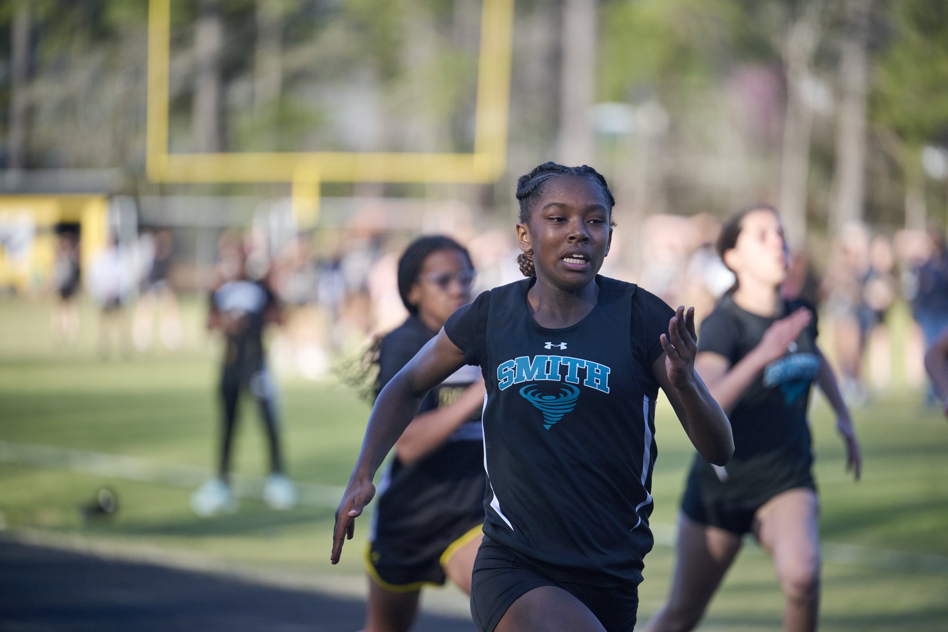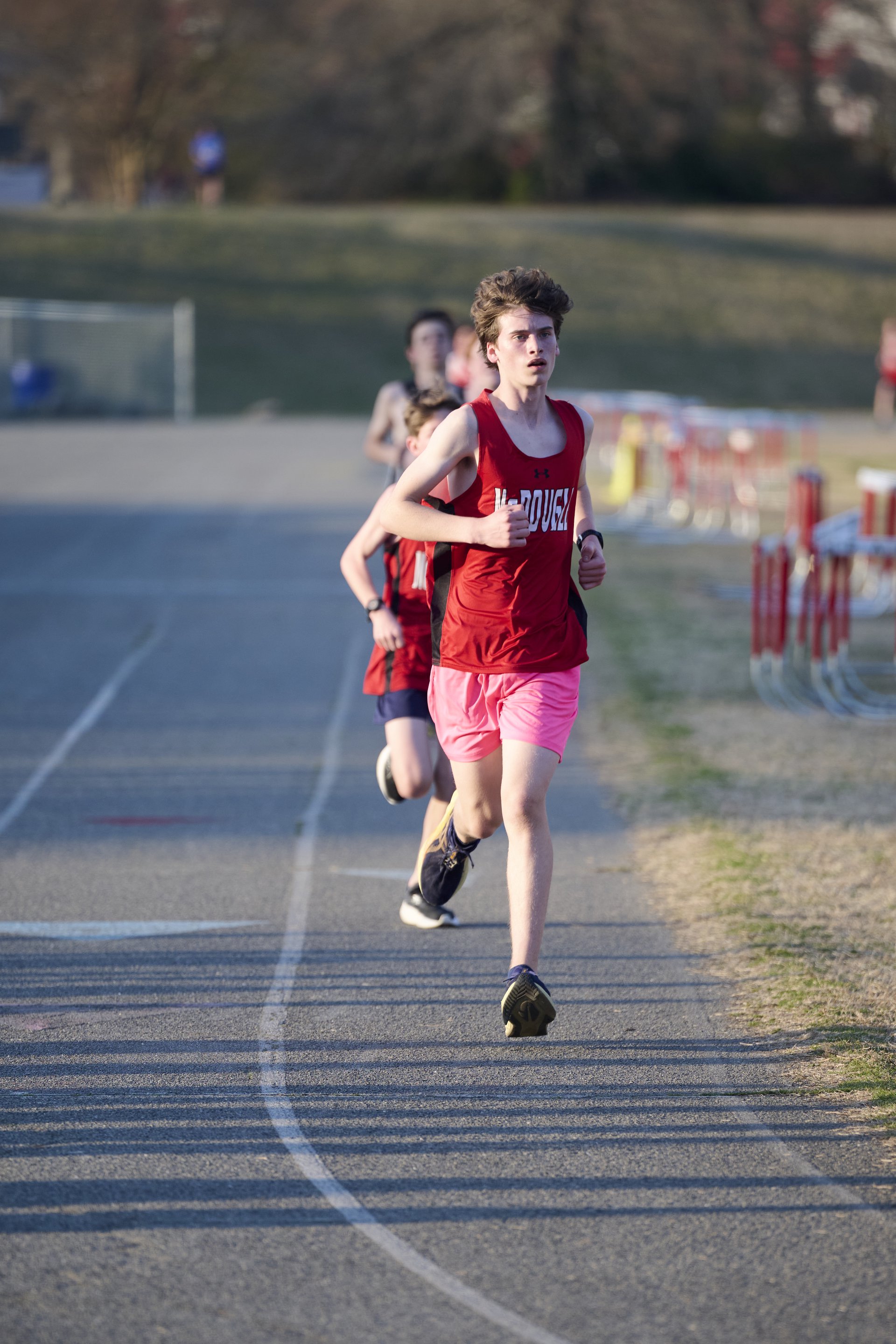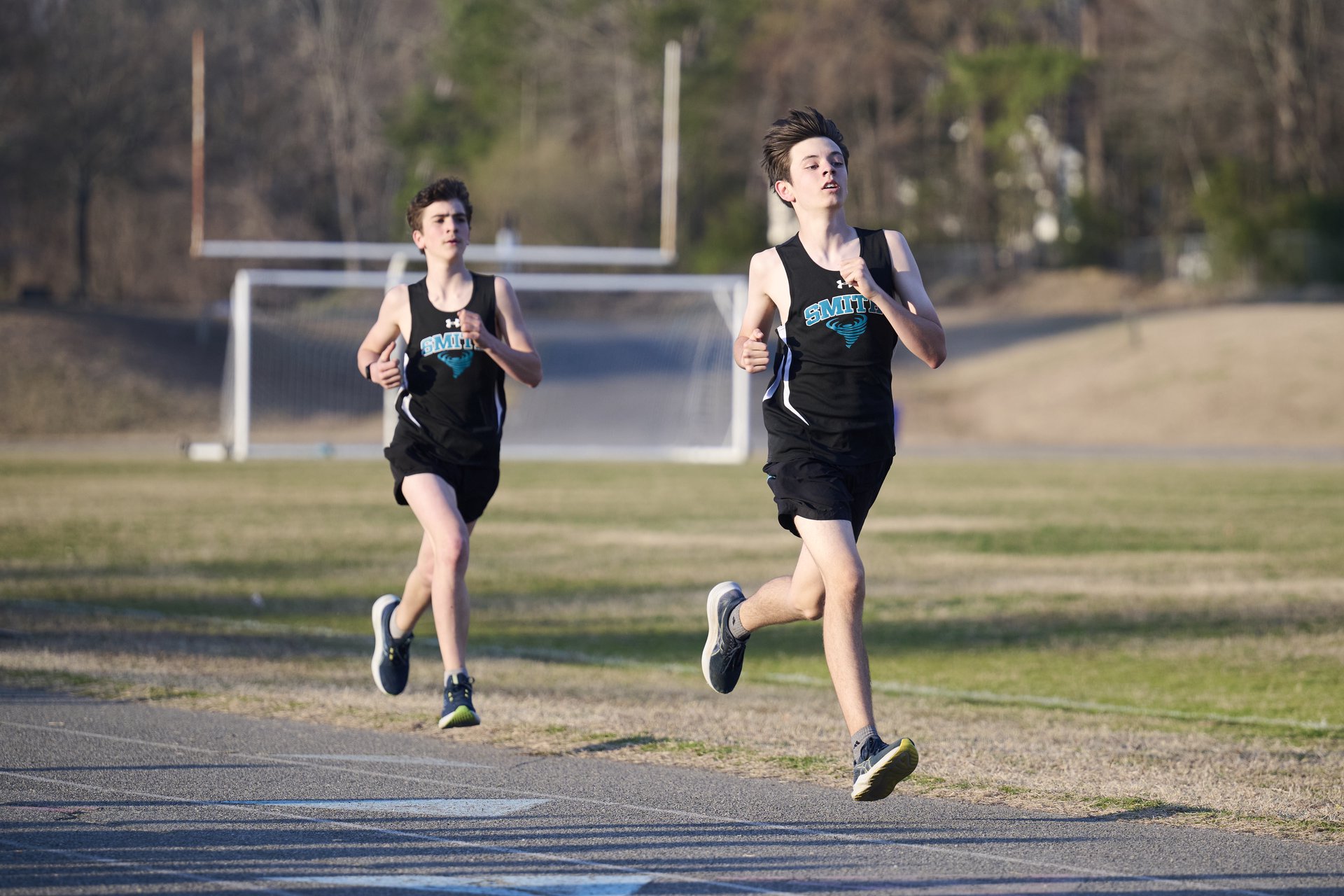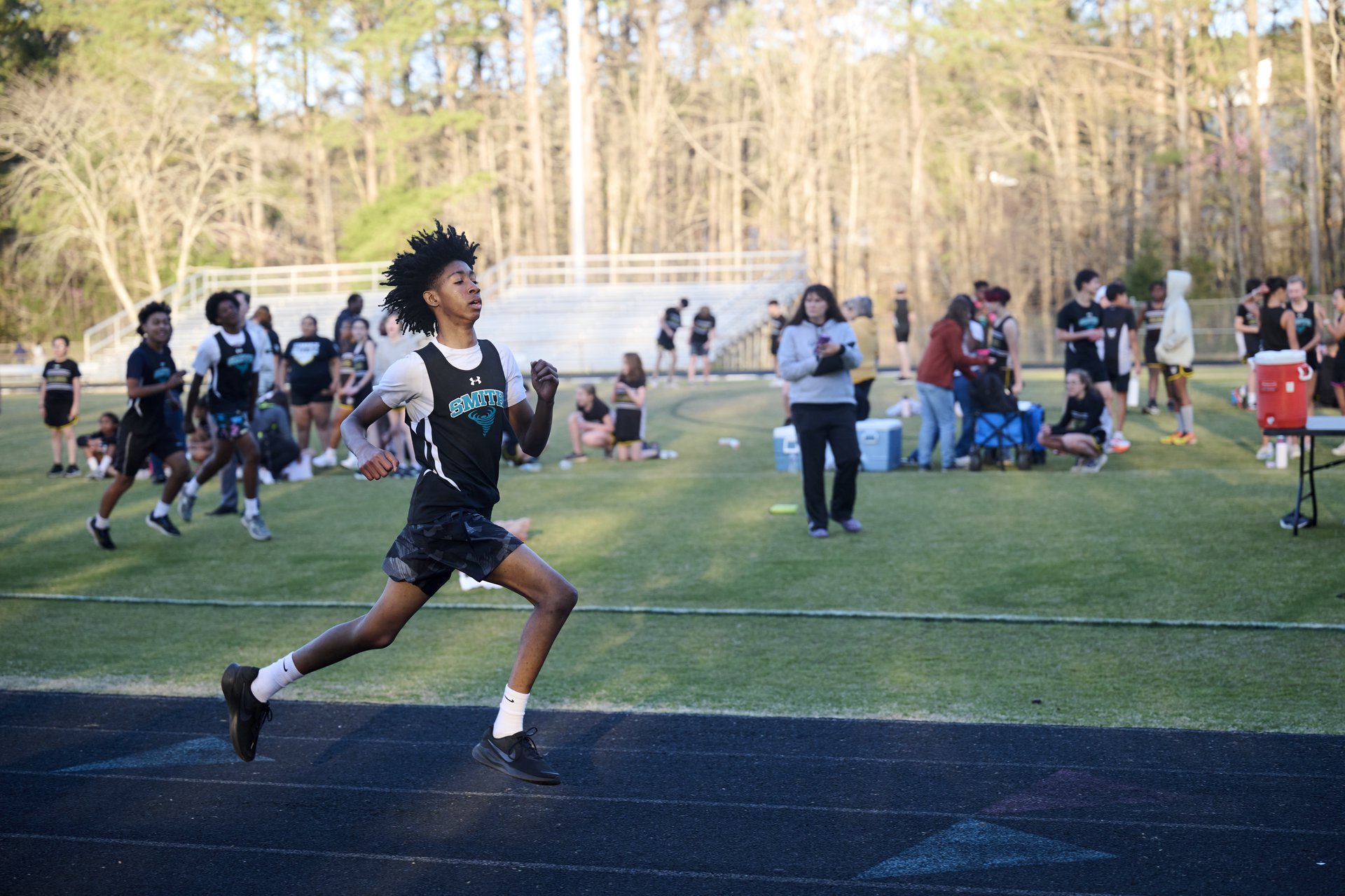 A running through a cotton field