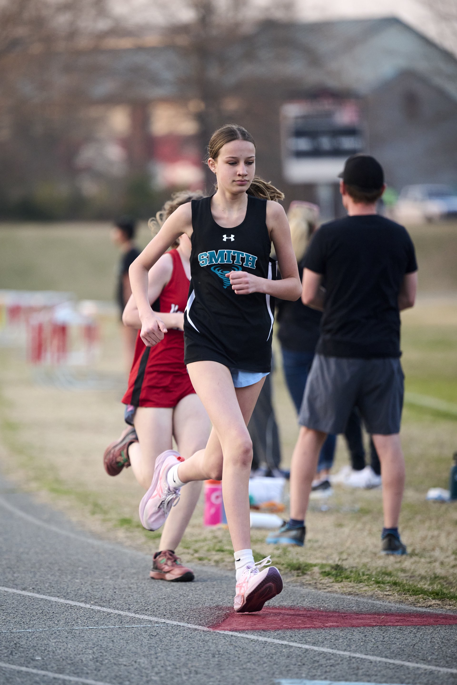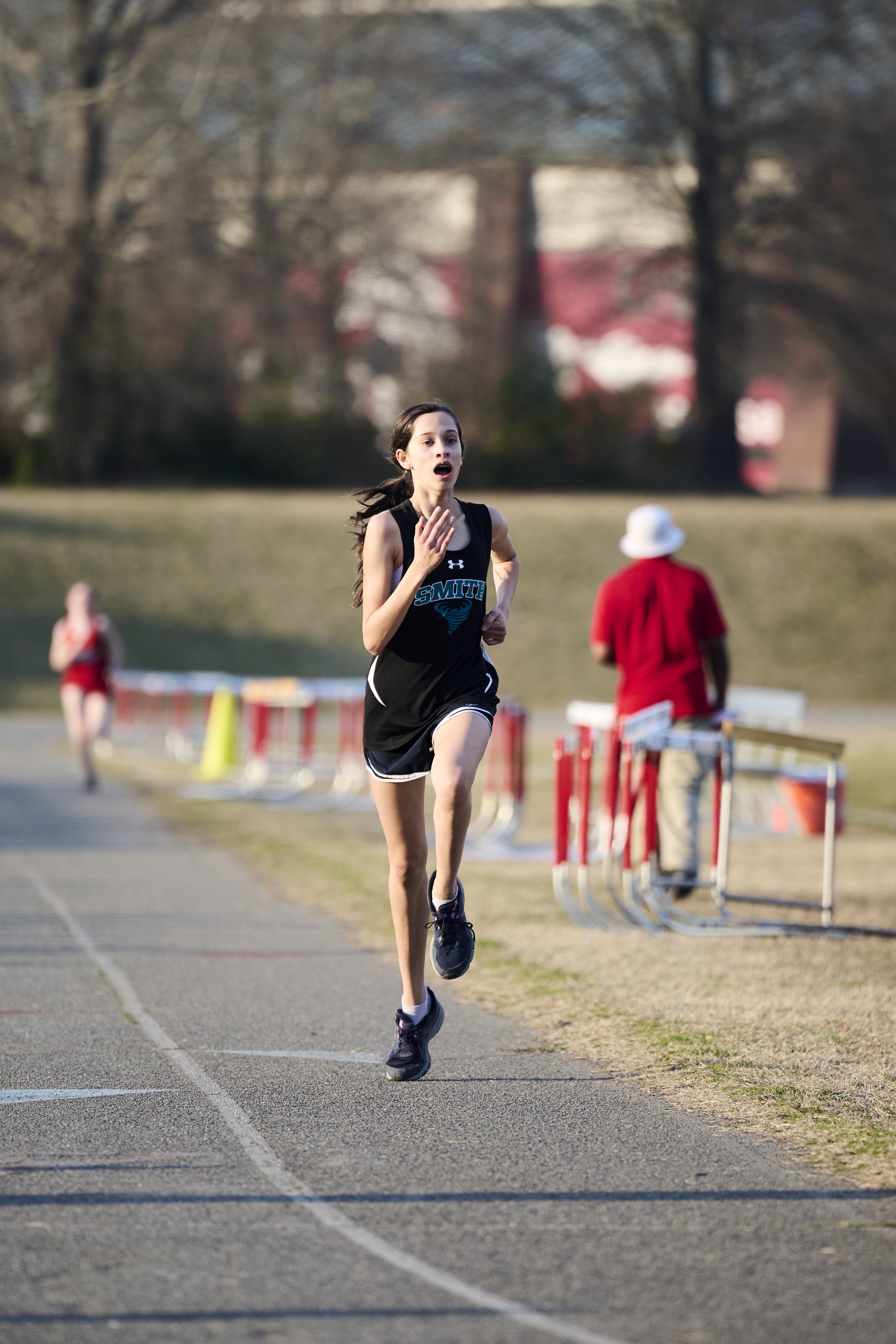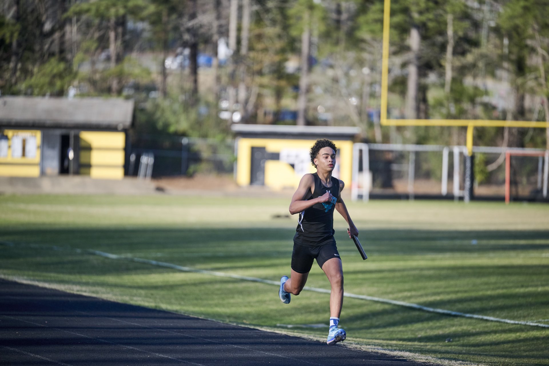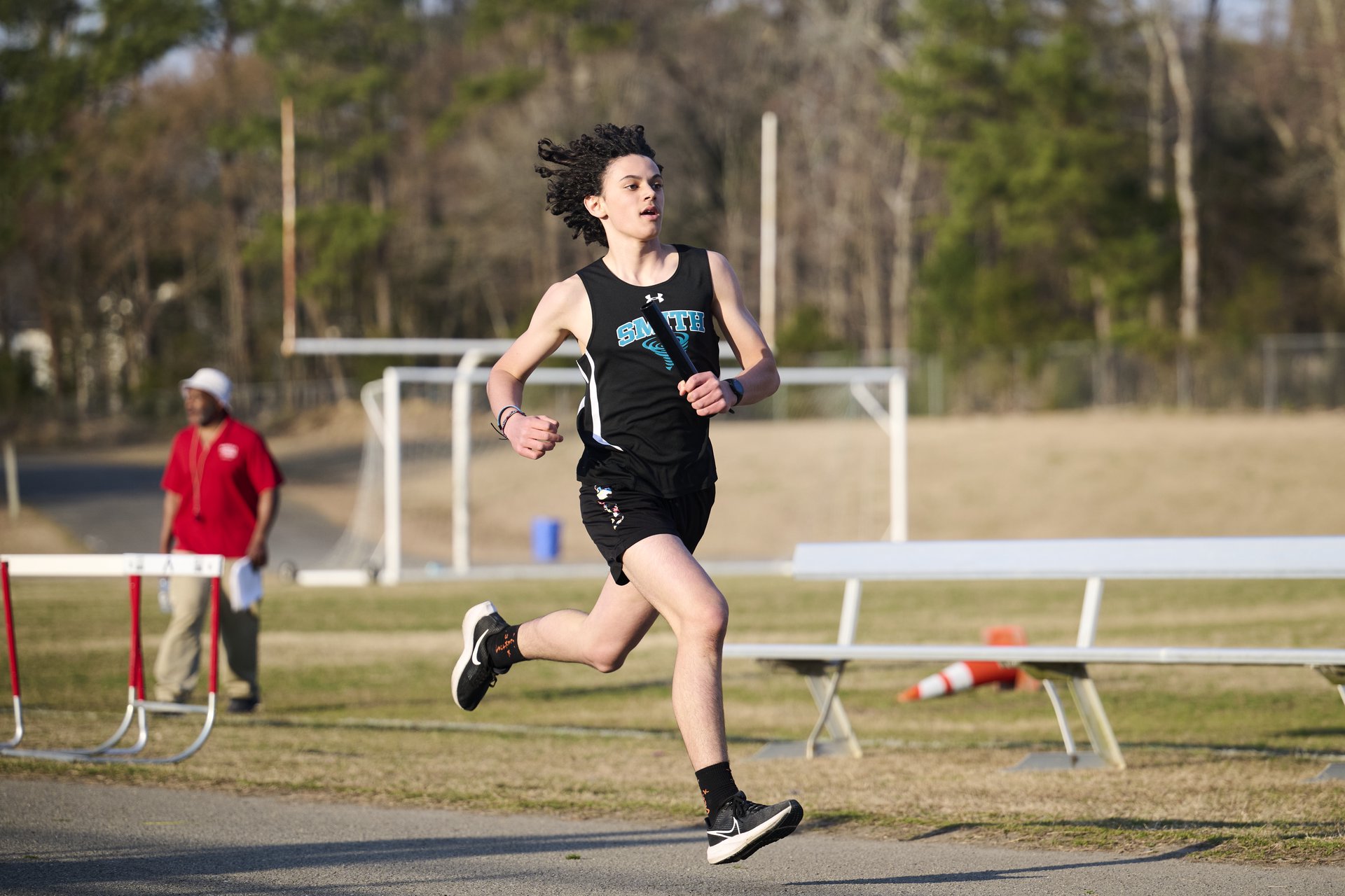 A running through a cotton field