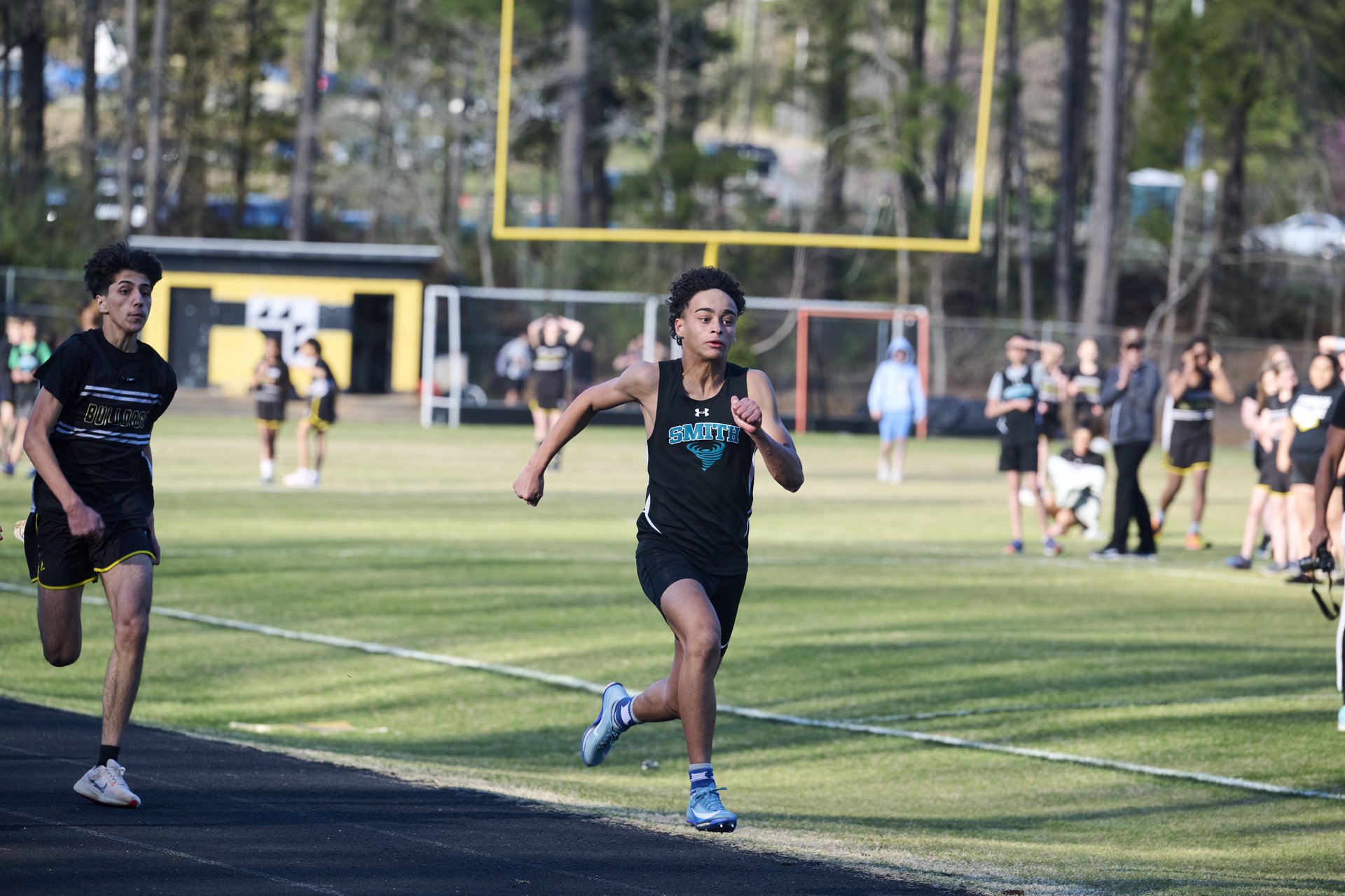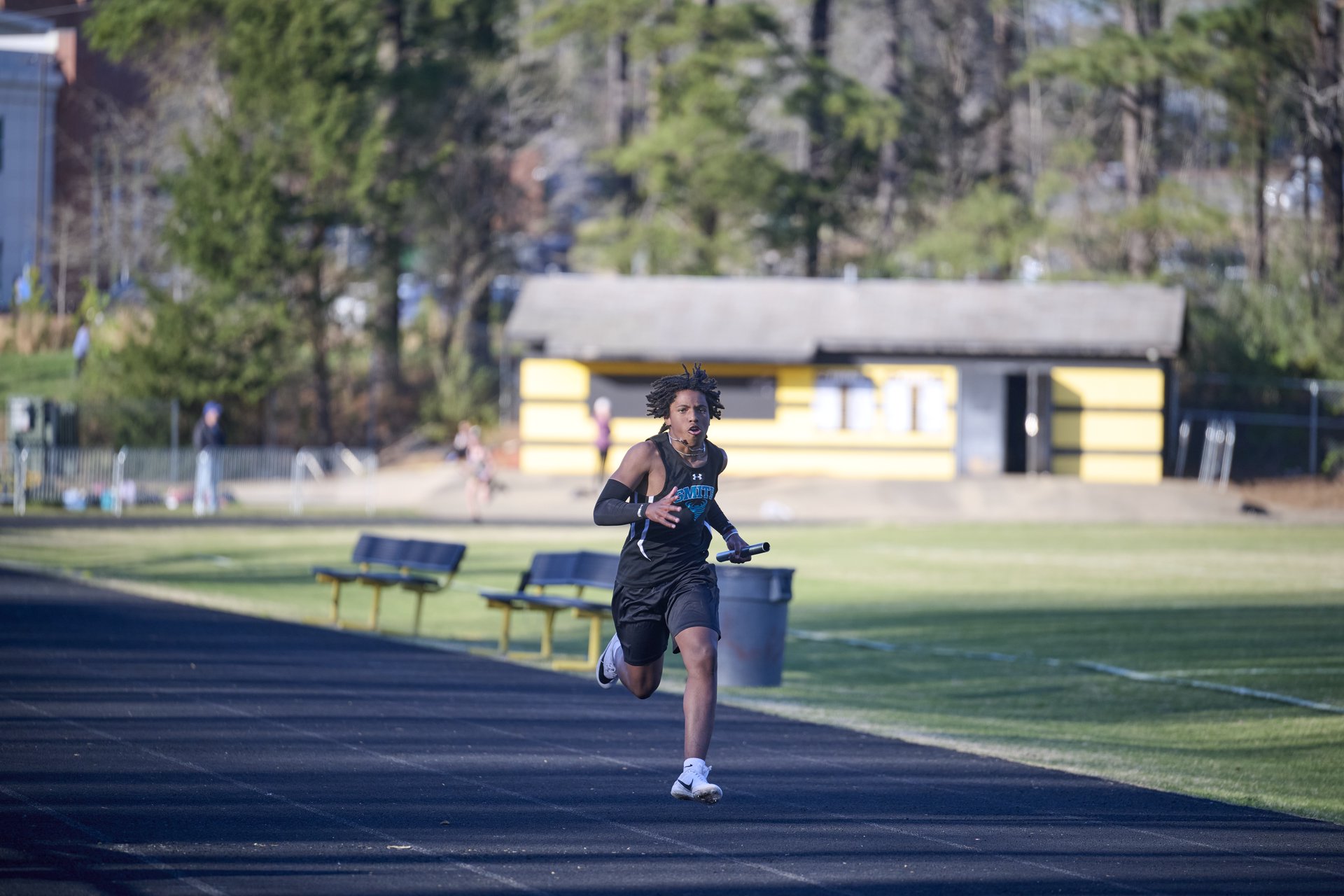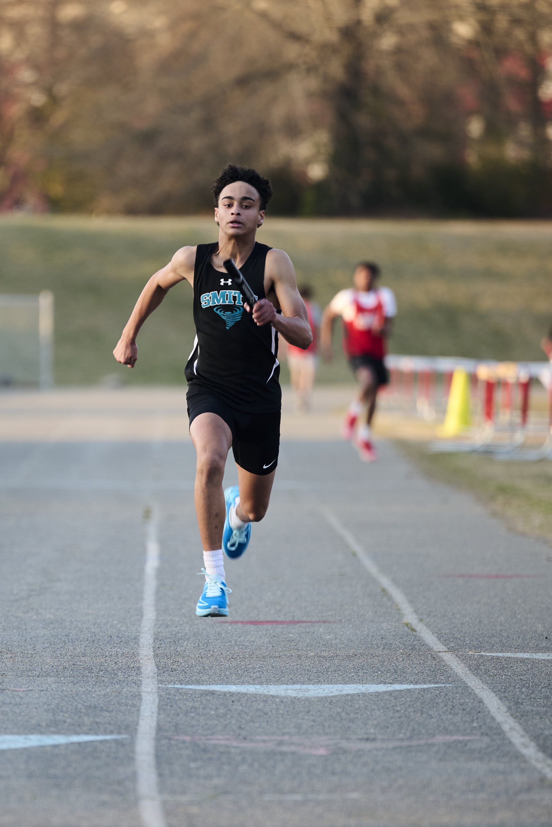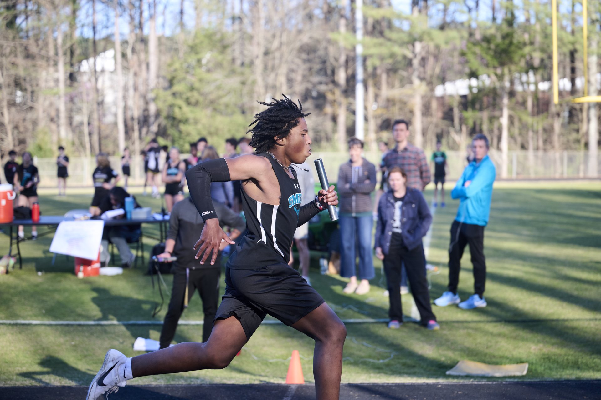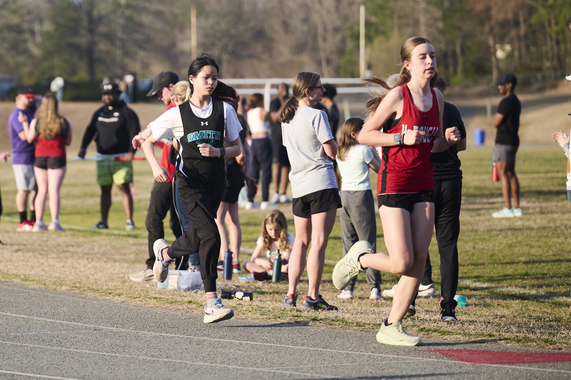 A running through a cotton field